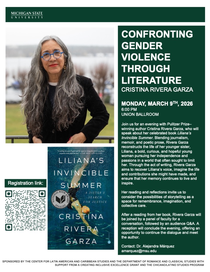 Join us for an evening with Pulitzer Prize–winning author Cristina Rivera Garza, who will speak about her celebrated book Liliana’s Invincible Summer. Blending journalism, memoir, and poetic prose, Rivera Garza reconstructs the life of her younger sister, Liliana, a bold, curious, and hopeful young woman pursuing her independence and passions in a world that often sought to limit her. Through the act of writing, Rivera Garza aims to recover Liliana’s voice, imagine the life and contributions she might have made, and ensure that her memory continues to live and inspire.